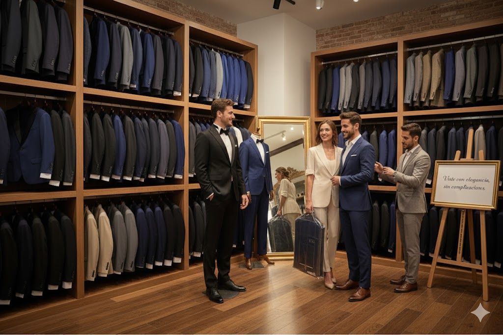 Si buscas elegancia sin compromiso de compra, ofrecemos el servicio de alquiler de ternos.