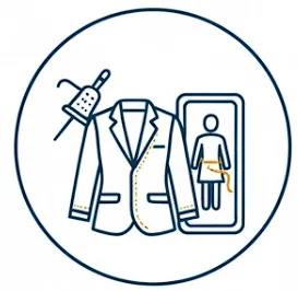 Reciba su prenda. Guardamos sus medidas en nuestro sistema para que sus futuros pedidos sean a un clic de distancia".