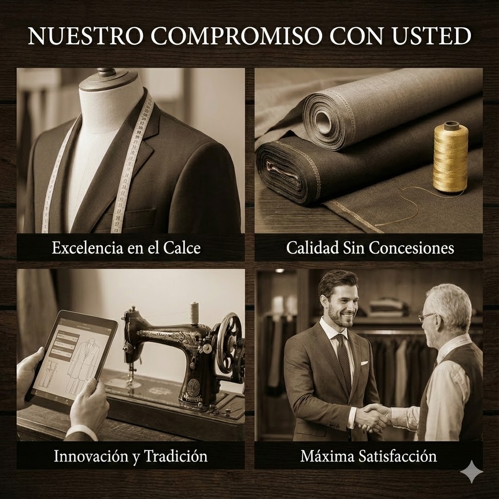 Excelencia en el Calce: Buscamos que cada prenda sea una extensión de su personalidad, garantizando un ajuste perfecto mediante 45 años de maestría artesanal.